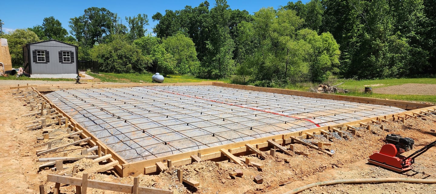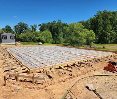 Monolithic Foundations are used for garages, houses, and sheds. This method saves time and provides a flat surface that can be built on right away or ready to add a crawlspace/basement with a polished concrete floor.